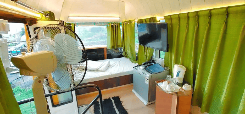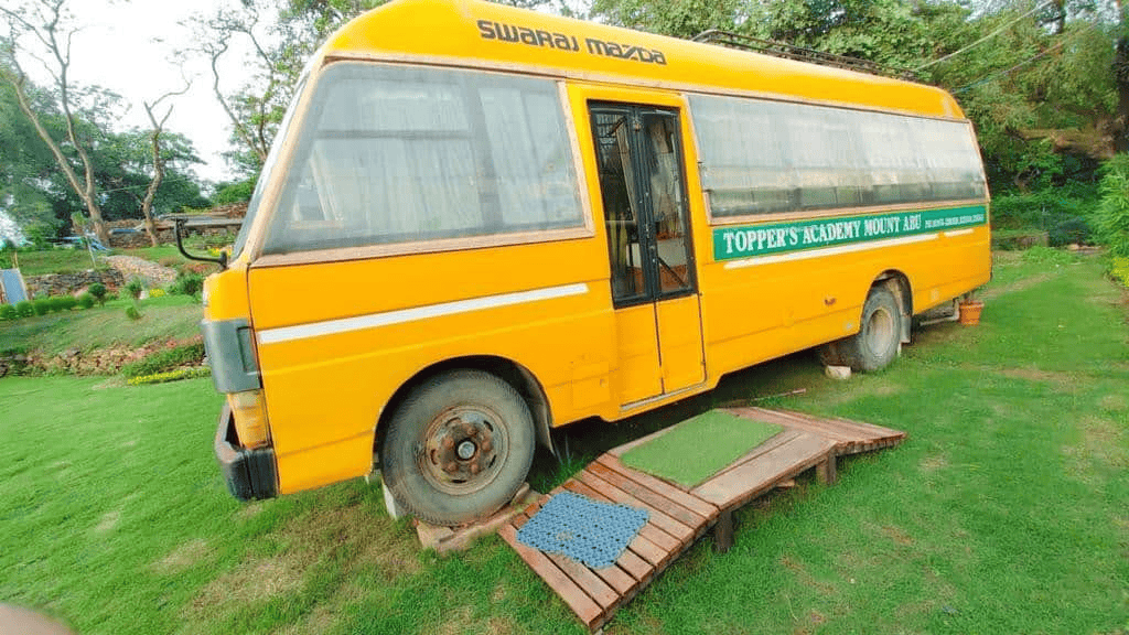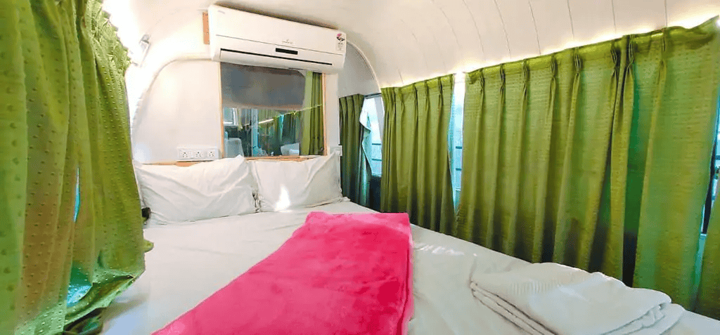 Located on the only Hill Station of Rajasthan in Mount Abu, Nested on Aravali Hills the stay is covered with greenery all around. The Caravan gives impeccable views of Aravi hills and lush greenery all around. The Carvan is equipped with all modern amenities like comfortable beds, fan and clean linen which makes it more cozy. The stay has a wooden flooring decorated with small carpets and curtains which makes it look beautiful. Further the stay features all modern amenities like TV, a fridge, AC and a Telecom as well. Further the Carvan has 2 single beds and can accommodate 2 people at a time and is en-suited with a washroom at back as well. The stay is situated in the heart of Mount Abu and hence can provide array of outdoor activities like,
